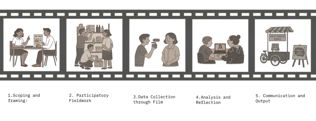 For my preparation project, I interned at Cocosmos, where I worked on developing a method for FORE, my design-through-film studio. During this period, I contributed to several projects, one of which was De Familie van Gestel. a community giveaway shop in Eindhoven, using visual ethnography to create a film portrait of its daily life and social value.